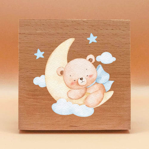 Ay Üzerinde Uyuyan Ayıcık Panosu – Erkek Bebek Ahşap Oda Dekoru, Kişiye Özel