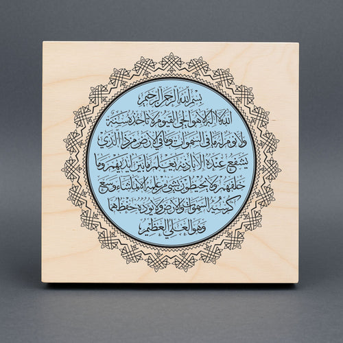 Ayetel Kürsi Panosu – Mavi Erkek Bebek Oda Dekoru, Doğal Ahşap